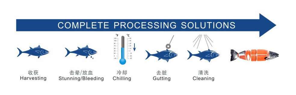 中臣碧陽與客戶一道出謀劃策,為“深藍(lán)一號(hào)”的配套養(yǎng)殖工船設(shè)計(jì)并提供加工生產(chǎn)線EP(設(shè)計(jì)+供貨)解決方案,涉及三文魚的宰殺放血、預(yù)冷和冰鮮保存,為“深藍(lán)一號(hào)”的三文魚起魚、加工和上市提供有力保障。